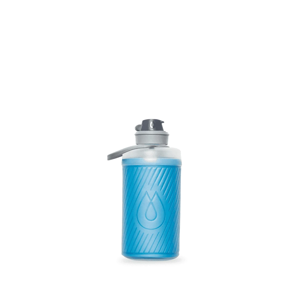 The Flux stands upright like a hard bottle but when you finish your drink, this bottle packs down to pocket size.
